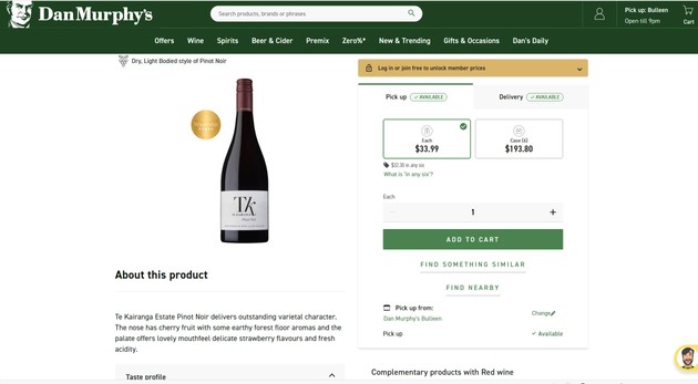 Example: Dan Murphy’s (wine points / ratings shown on product cards)